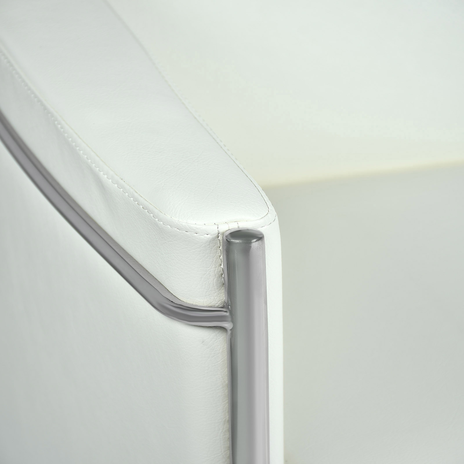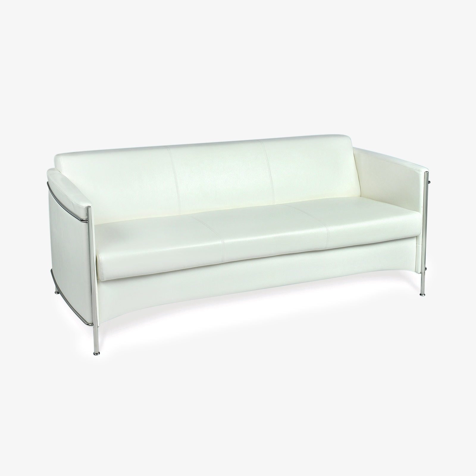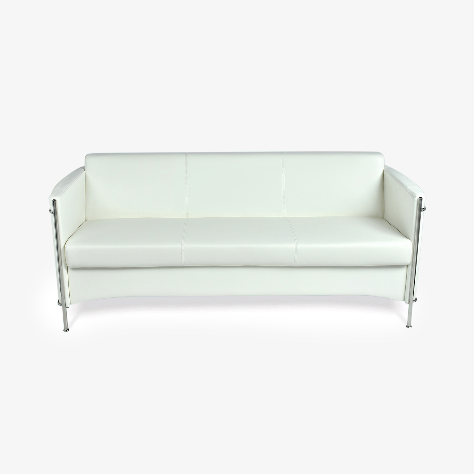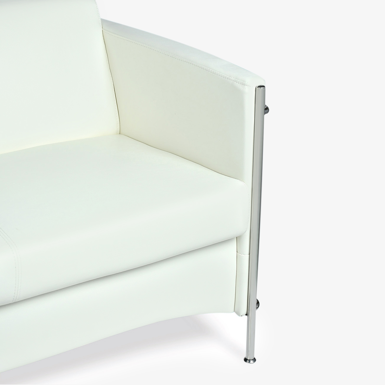 Sleek and contemporary, this three-seater sofa features premium white PU upholstery over high-density foam for lasting comfort. Built with a solid wood and polywood frame and supported by stainless steel legs, it’s a perfect blend of style and strength.