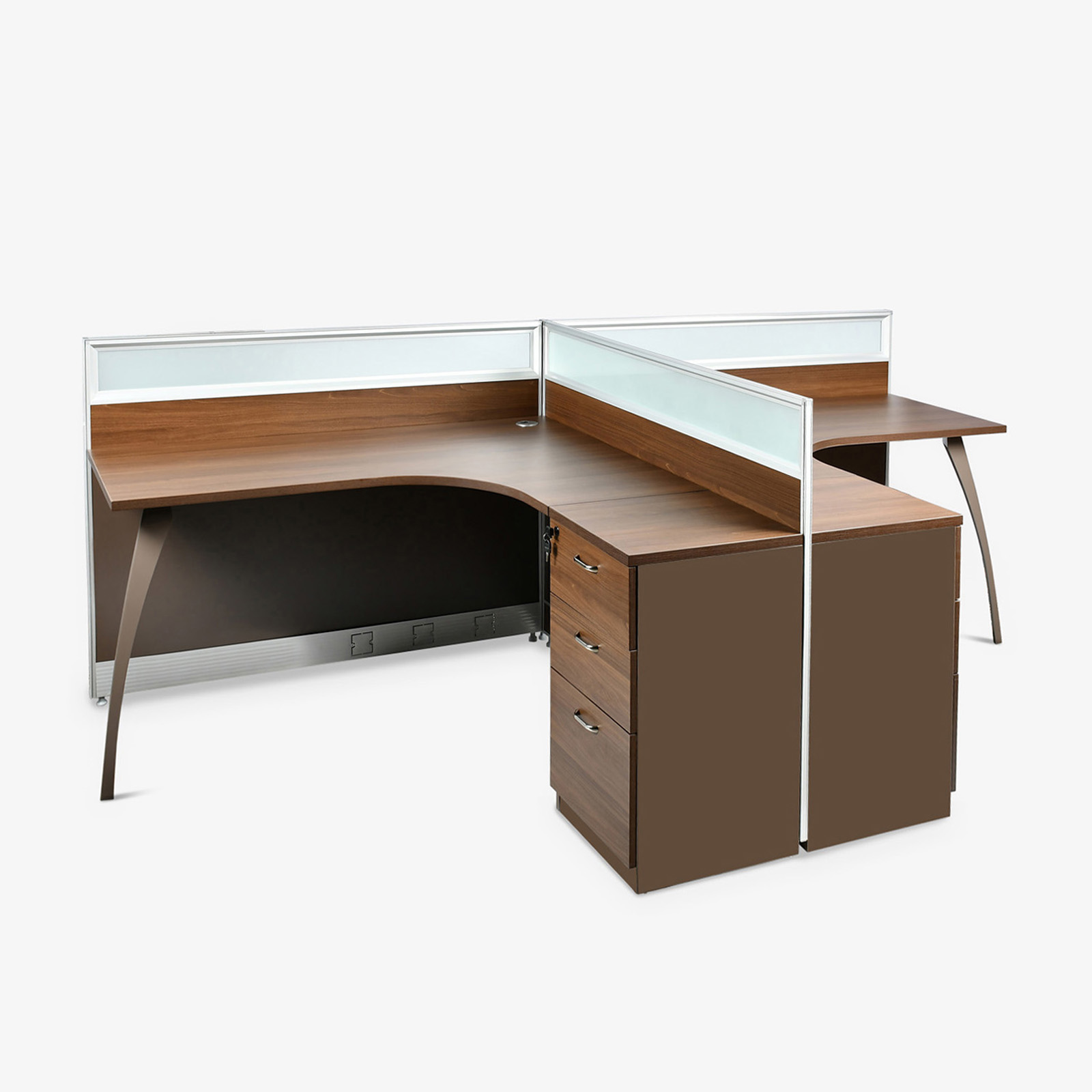 2 Person T-shaped Workstation Dim: W2840*D1420/450*H1050 MM Finish – Melamine. Color: Brown Oak + Brown.