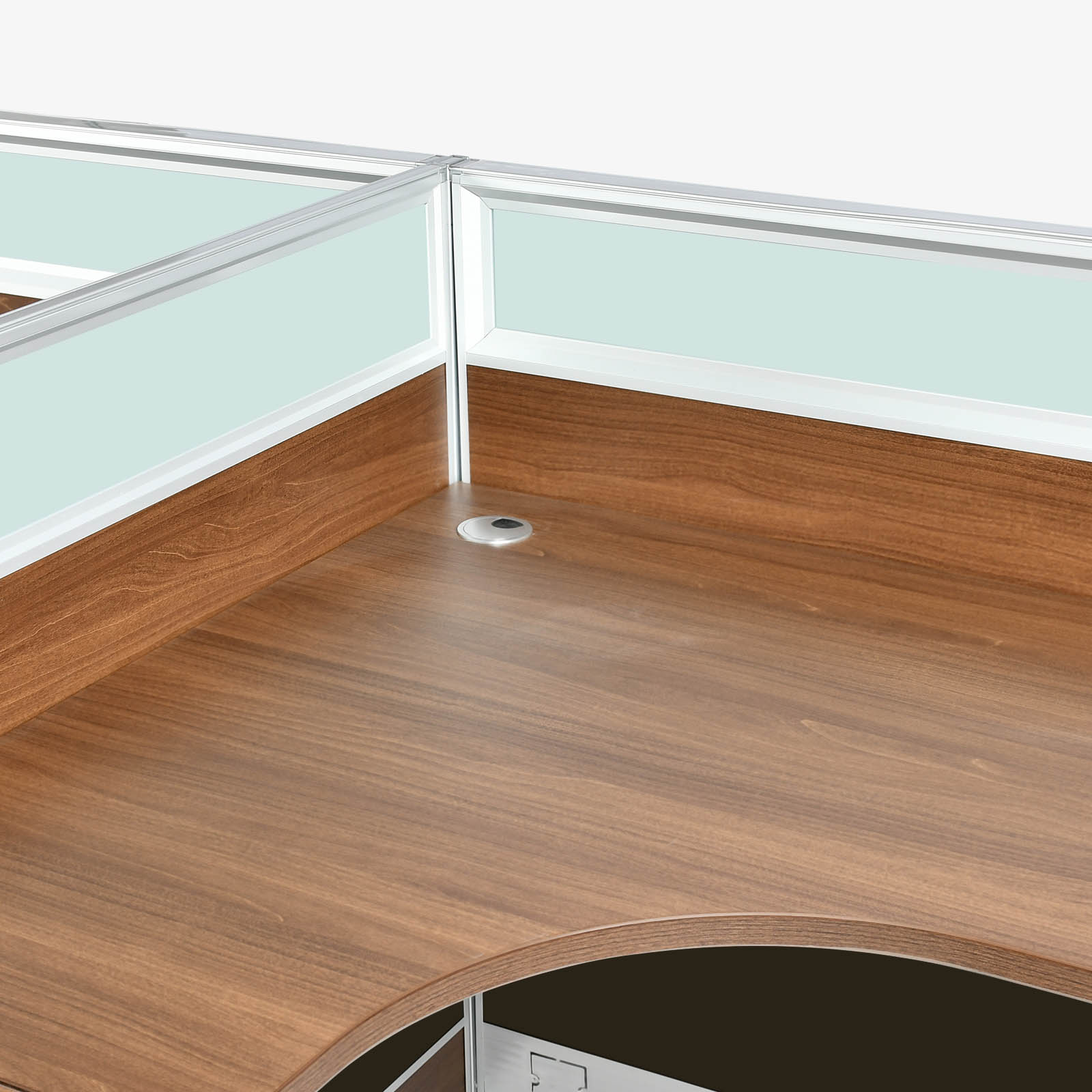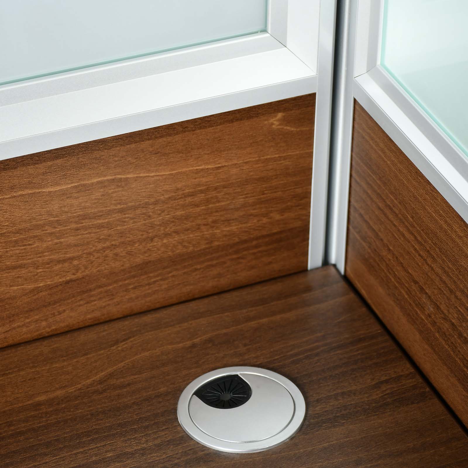 Two Person Workstation Dimension – W1200xD1200xH750 mm. Color – Rhine Light Oak + Iron Ash.